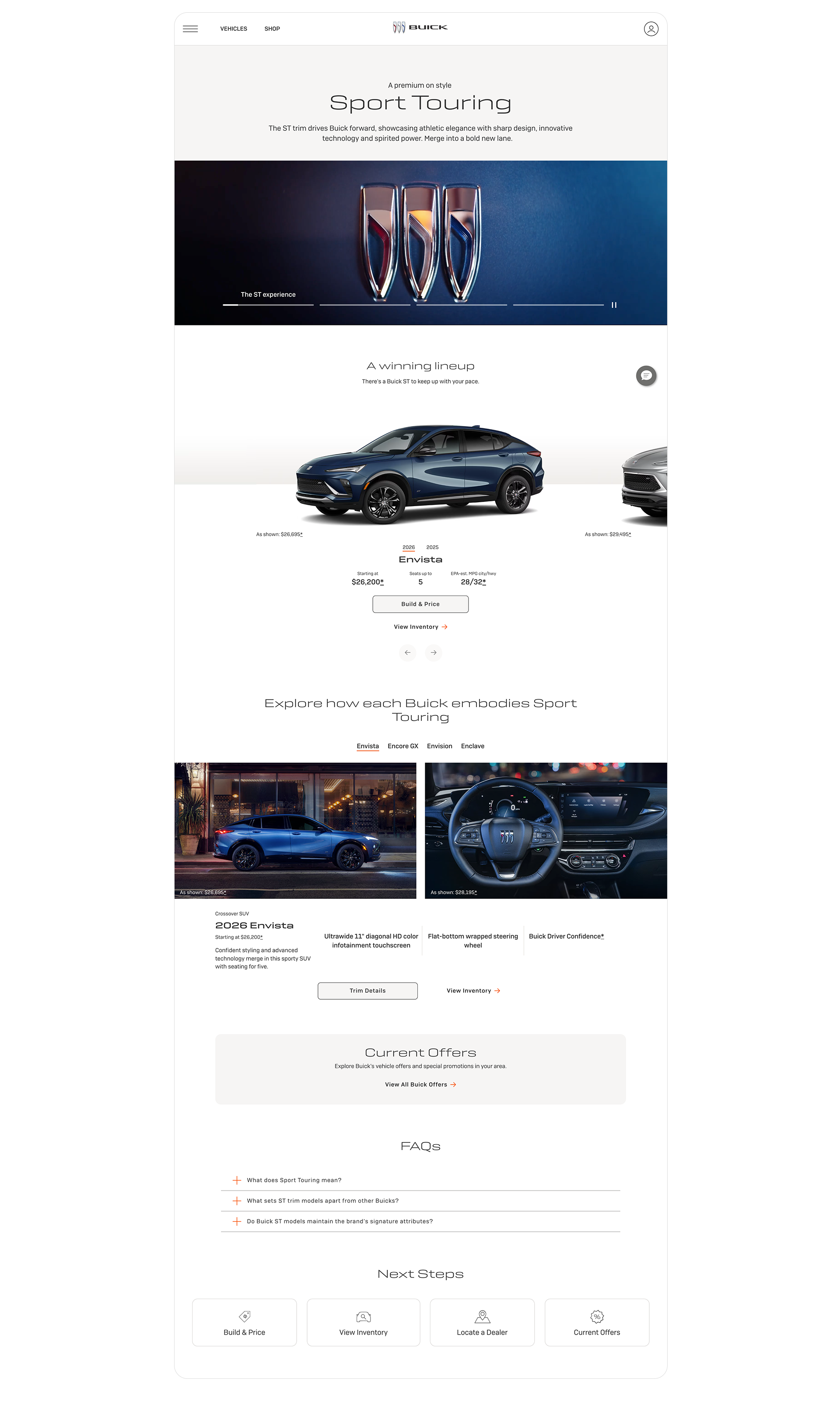 While Buick has two trims for their vehicles, users still want an easy way to compare the trims between models and find a way to easily understand unique features. I collaborated with the UX team and managed the design of the Sport Touring (ST) and Avenir trim pages. This new page helps users find the trim and model that works best for them and benefits SEO/GEO. Win-win.