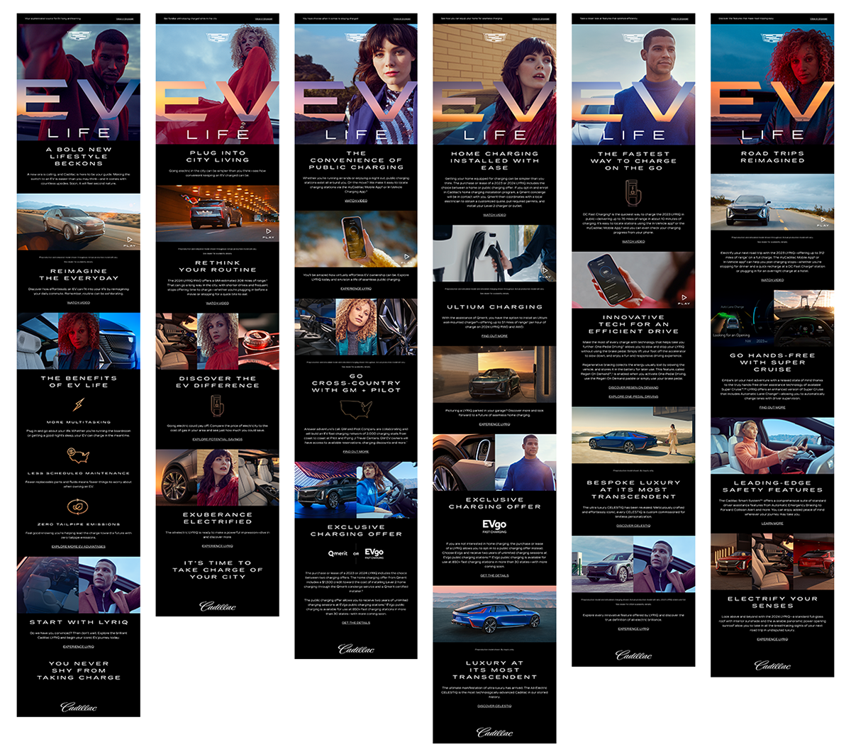 A total of six videos were created to match our email program based off of the largest concerns that consumers had when it came to driving and purchasing an EV. With Cadillac's all-electric LYRIQ, the 'Your EV Life' campaign was created to break down those barriers. We shot the videos in the desert in high-fashion to show that you really can find a charger anywhere.