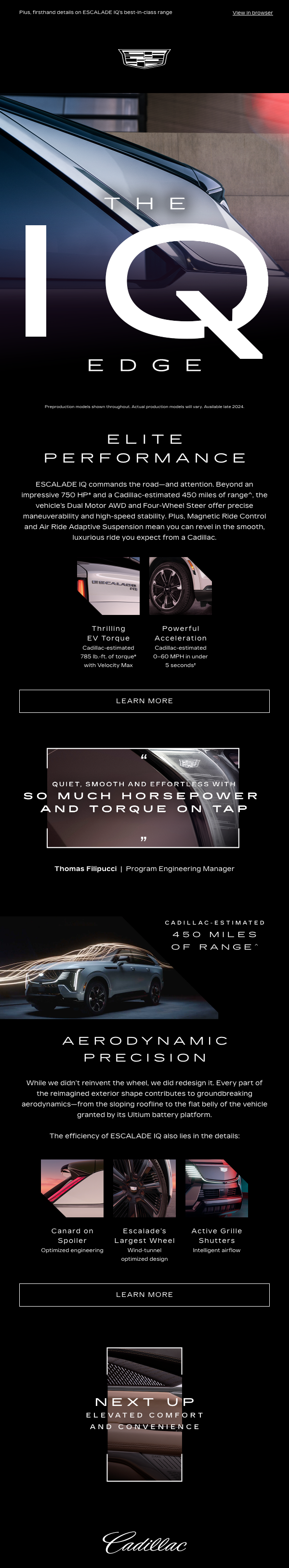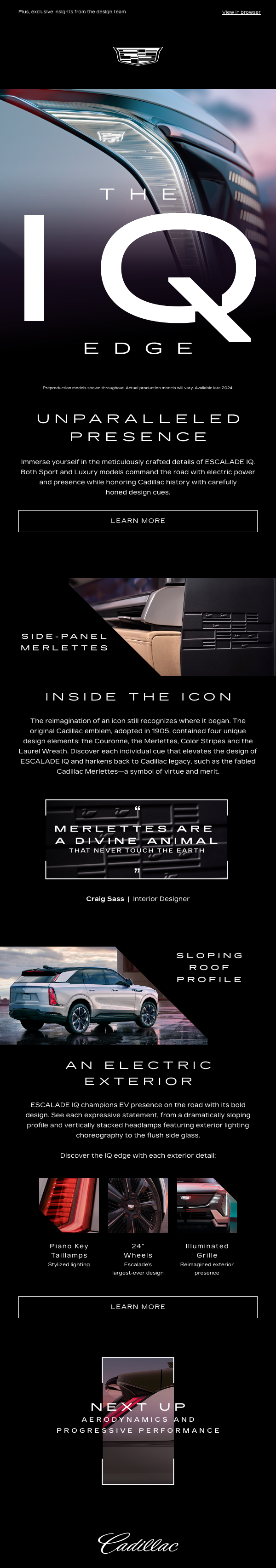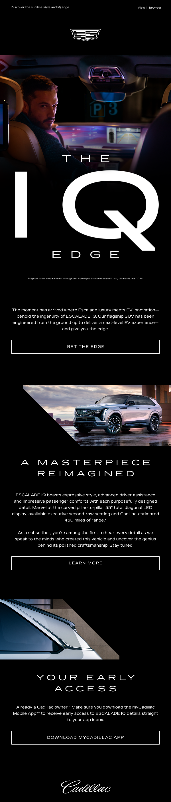 Escalade is going electric. And it's big. Real big. When engineers created the ESCALADE IQ, they made no compromises. A six touch email program for handraisers, The IQ Edge rewarded viewers with insider information from Cadillac's engineers and designers.